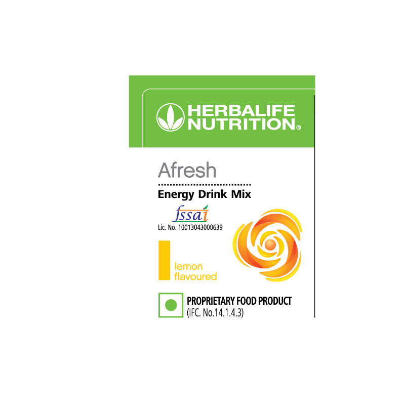 • Afresh Energy drink mix contains natural sources of caffeine for an uplifting treat.