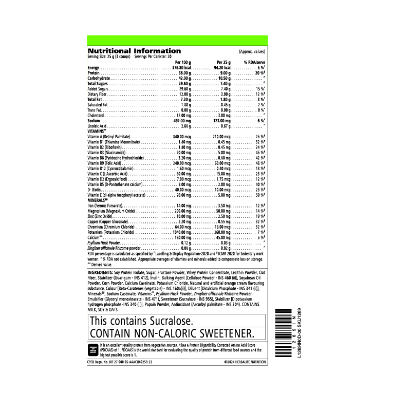 This product is not for parenteral use. The product is not to be used by pregnant, nursing, and lactating women or children under 5 years, adolescents and elderly, except when medically advised by physician or certified dietician or nutrition professional. This product is not intended to diagnose, treat, cure or prevent any disease. Herbalife products are designed for use by adults as a part of a healthy well-balanced diet. Our products are formulated for adults and are labelled based on the adult Recommended Dietary Allowances. Before using this product as part of a weight control/ management program it is also advisable to consult a physician. Herbalife does not recommend (except under the supervision of a physician) that children/adolescents consume Herbalife products for weight loss, especially during their formative years.