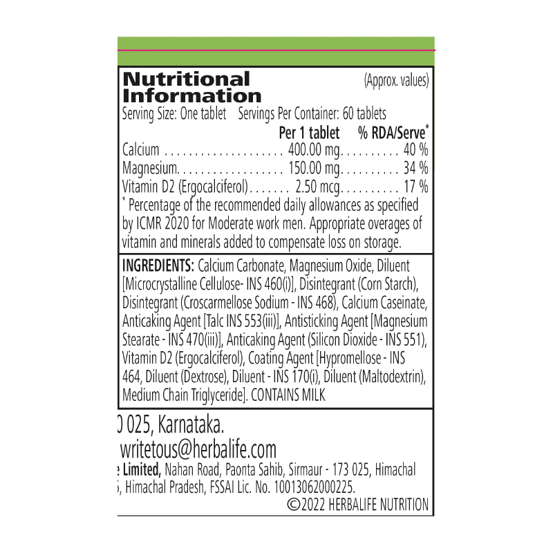 • Contains calcium, with added magnesium and Vitamin D