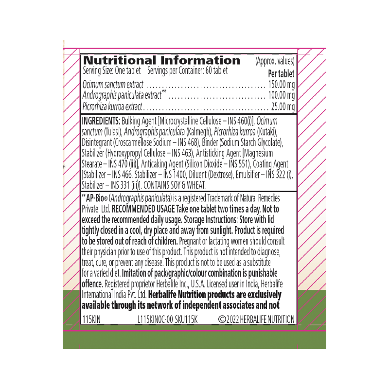 Standardized extracts of Tulasi and Kalmegh** in this product helps manage the body’s natural immunity and maintain a healthy life.