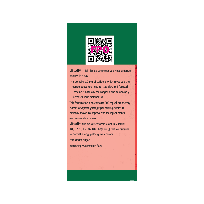 - Liftoff® also delivers Vitamin C and B Vitamins (B1, B2,B3, B5, B6, B7, B12) that contributes to normal energy yielding metabolism.