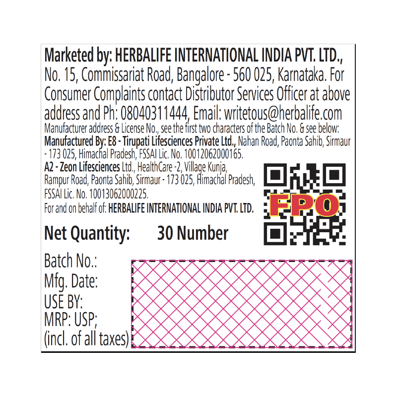<div>Disclaimer :This product is not to diagnose,cure,treat or prevent any disease. This product is not recommended for use by children, women who are pregnant, lactating or have an estrogen-sensitive condition. This product is for adult use only.</div> <div>Herbalife Nutrition products are exclusively available only through its network of independent distributors and not through any unauthorized sellers selling on e-commerce platforms. Herbalife shall not be liable to extend gold standard gurantee and 30-days money-back gurantee on any Herbalife Nutrition products purchased from any unauthorized sales channels.<br /></div>